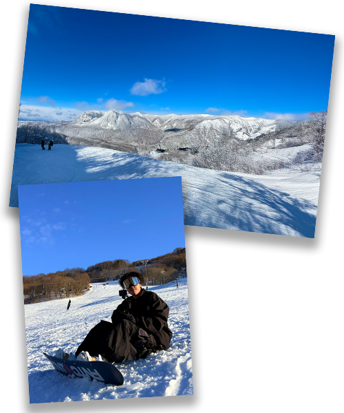 休日には、冬はゲレンデにGoproをもって動画を撮ったりすることが好きです。撮った動画を編集してプライベートの投稿をするのが趣味です。